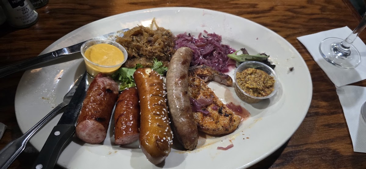 Great food, great atmosphere and sometimes they even put on music. I’m not sure exactly what date they do but if you guys are looking for German food, they do you have the option right now and my brother and I end up sharing some really delicious food together I definitely would recommend this place if you’re looking for a place to eat.